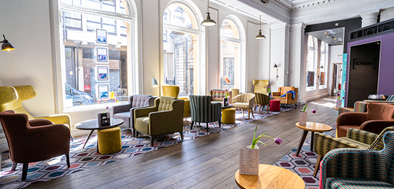 A conversion of Sheffield’s 19th-century bank – whose original vaults remain in place beneath the cinema – Curzon Sheffield’s characterful, Grade-II listed building reflects the venue’s lively atmosphere. The cinema has three screens, each with playful, multicoloured seating, and an inviting rooftop terrace that opens in the summer and offers peerless views across this historic city.