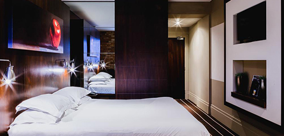 Each of our bedroom's furnishings and décor is situated to create a feeling of clean lines with brick and wood interiors contrasting with technologically modern amenities. Guestrooms also offer 32-inch LCD televisions, a workstation with Internet access, fresh cotton linens, bespoke luxury bathrooms and walk in power showers. Our Executive bedrooms also benefit from being more spacious, with king sized beds.