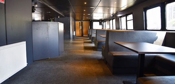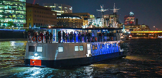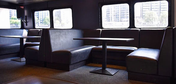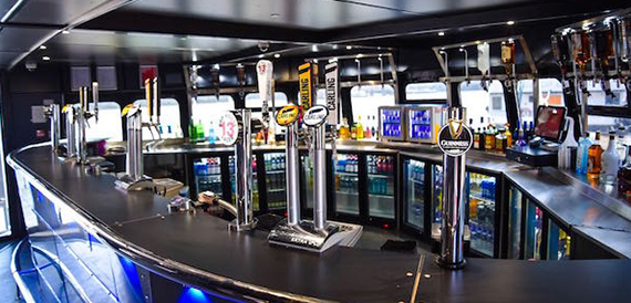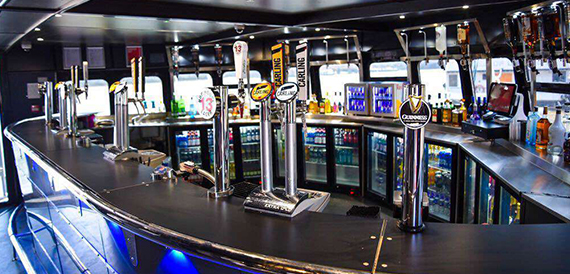 Pearl of London has the only floating 360 degree bar in london, offering all guests on the top deck easy access to purchase ice cold drinks while you take in all the great sights as you cruise down through the heart of the city. Boarding from our forward door you will enter a spacious large saloon with ultra-modern black leather booth seats with a capacity of 10 passengers on each booth. At the front of the vessel you will see our large fully stocked main bar selling all the popular brands. In the middle of the saloon you will have access to the large dance floor with state of the art lighting.