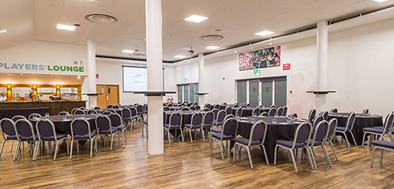 We’re very proud to launch our brand new Undercroft Suite. The ground floor space can be split into three individual rooms (Players’ Lounge, Kings Bar & Debentures) and has recently been refurbished to a very high standard making it unrecognisable from the old school rugby club lounge it previously was. With a very high end, integrated PA system and digital display package, the three rooms which spread across the length of the East Stand are built ready to take on conferences, weddings and exhibitions of high volume whilst providing a plug and play AV style set up. This AV can be segmented across the rooms providing individual zones, or merged into one large PA and display system.
