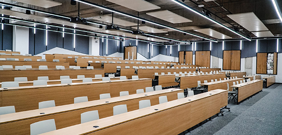The University of Sheffield's first carbon negative building opened in April 2023, The Wave features a host of lecture theatres, meeting rooms and exhibition spaces perfect for your next event. There are 3 large theatres on the ground floor, Lecture Theatre 1 is the largest, which holds up to 400 guests and Lecture Theatres 2 & 3 have a capacity of x240, there are also Work Rooms 1 & 2 on the ground floor, both flat floor spaces with a cabaret style set up and capacity for 140 guests, and a further 2 upstairs, each with capacity for 120 guests, plus an additional x16 break out rooms with capacities ranging from x10 to x80 people. There is also the bright and airy atrium area, flooded with natural light from the impressive glass ceiling which can be used as a catering & exhibition space.